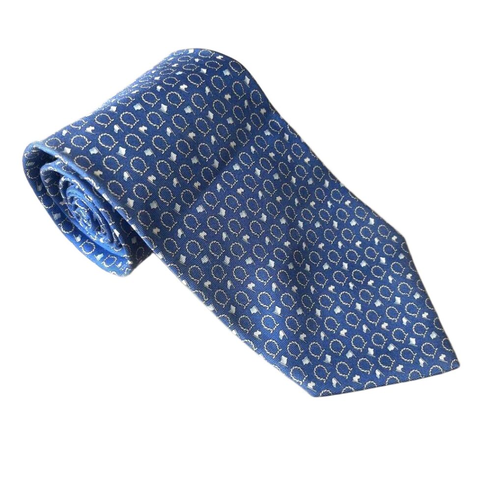 Salvatore Ferragamo Silk Tie Blue Geometric Made in Italy Authentic