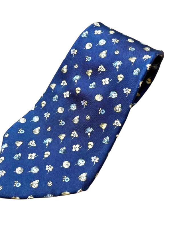 Salvatore Ferragamo Silk Tie Blue Floral Made in Italy Authentic