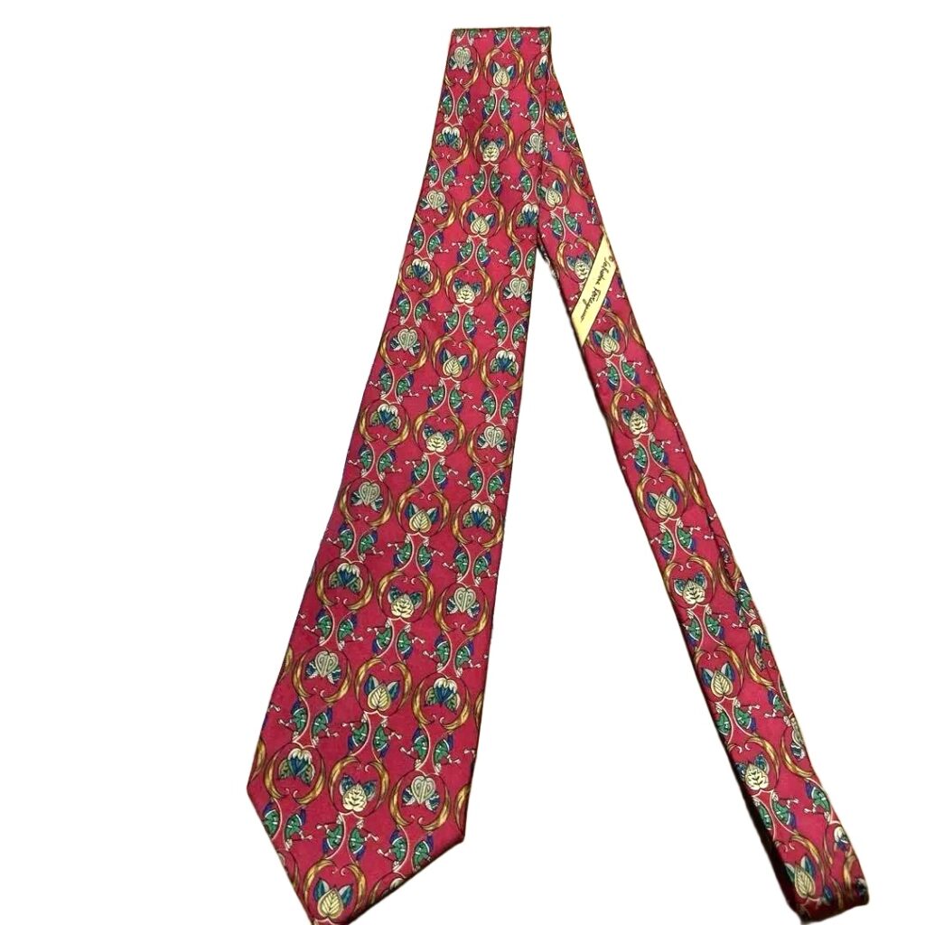 Salvatore Ferragamo Silk Tie Red Floral Made in Italy Authentic