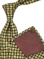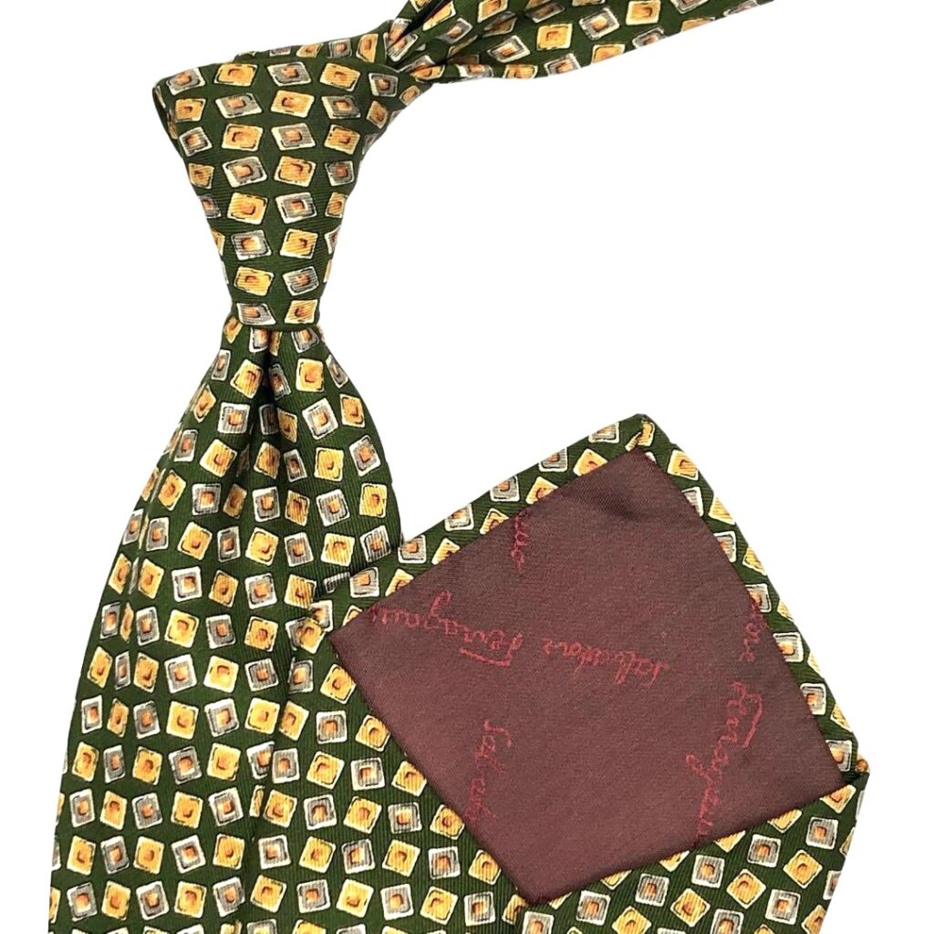 Salvatore Ferragamo Silk Tie Green Geometric Made in Italy Authentic