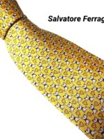 Salvatore Ferragamo Silk Tie Yellow Animal Print Made in Italy Authentic