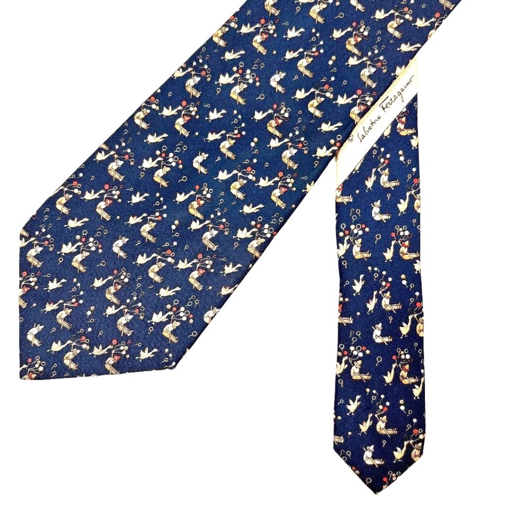 Salvatore Ferragamo Silk Tie Blue Animal Print Made in Italy Authentic