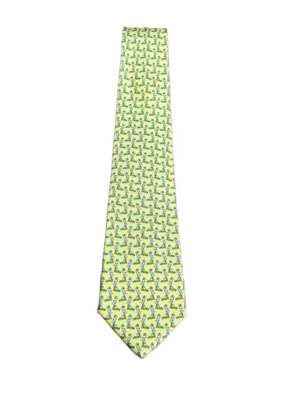 Salvatore Ferragamo Silk Tie Yellow Animal Print Made in Italy Authentic