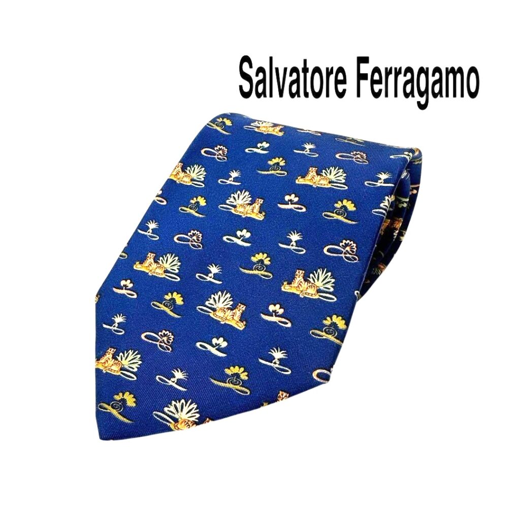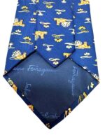 Salvatore Ferragamo Silk Tie Blue Animal Print Made in Italy Authentic