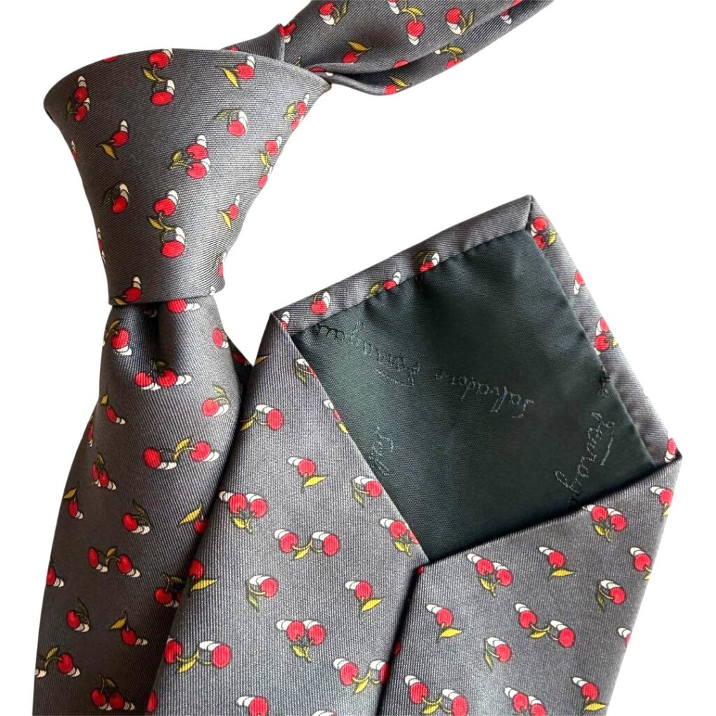 Salvatore Ferragamo Silk Tie Gray Floral Made in Italy Authentic