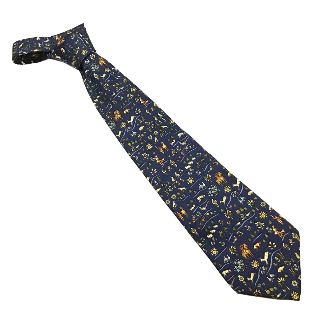 Salvatore Ferragamo Silk Tie Blue Animal Print Made in Italy Authentic