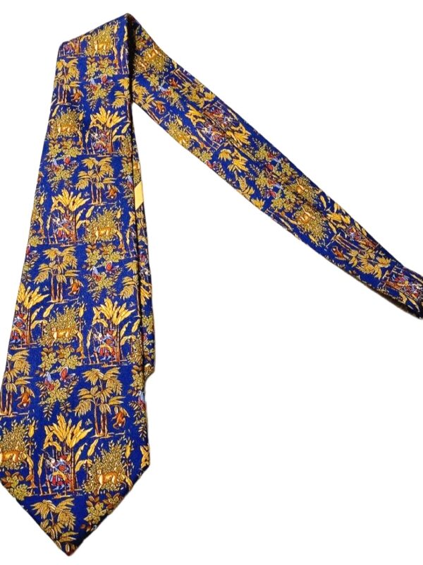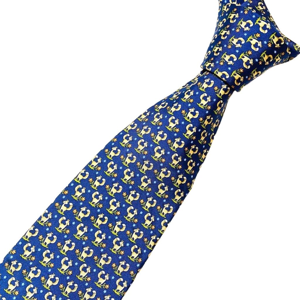 Salvatore Ferragamo Silk Tie Blue Animal Print Made in Italy Authentic