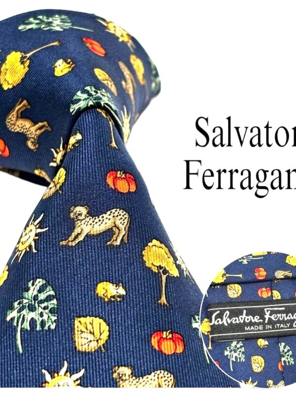 Salvatore Ferragamo Silk Tie Multicolor Animal Print Made in Italy Authentic