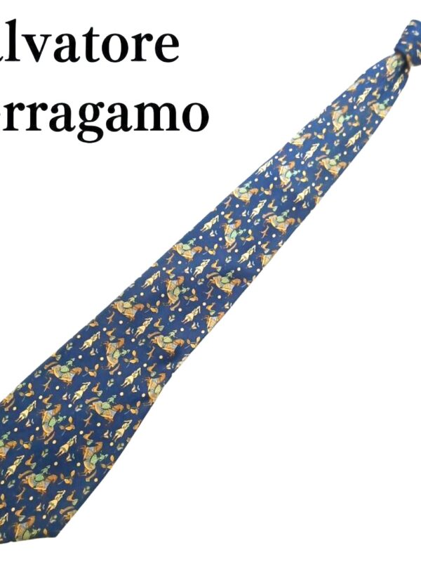 Salvatore Ferragamo Silk Tie Blue Animal Print Made in Italy Authentic