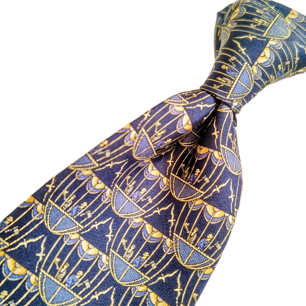 Salvatore Ferragamo Silk Tie Blue Geometric Made in Italy Authentic