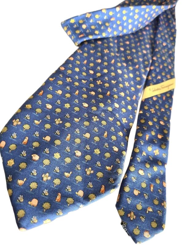 Salvatore Ferragamo Silk Tie Blue Floral Made in Italy Authentic
