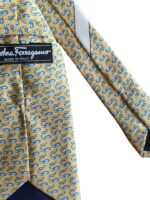 Salvatore Ferragamo Silk Tie Yellow Animal Print Made in Italy Authentic
