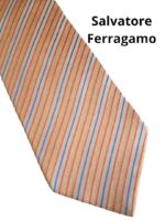 Salvatore Ferragamo Silk Tie Orange Striped Made in Italy Authentic