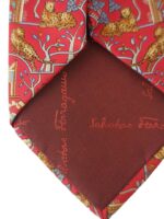 Salvatore Ferragamo Silk Tie Red Animal Print Made in Italy Authentic