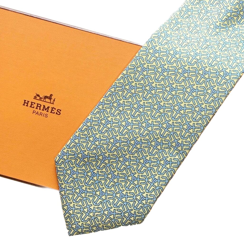 Hermes Silk Tie Blue Geometric Made in France Authentic