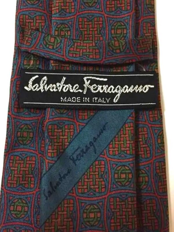 Ferragamo Silk Tie Multicolor Geometric Made in Italy Authentic