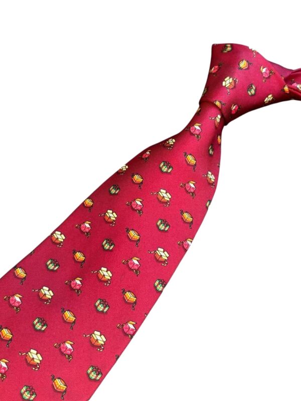 Salvatore Ferragamo Silk Tie Red Geometric Made in Italy Authentic