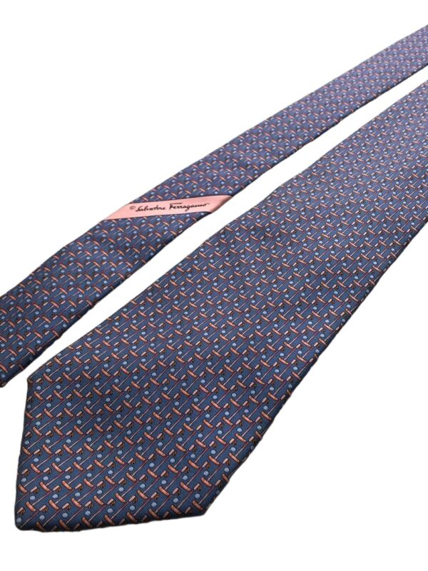 Salvatore Ferragamo Silk Tie Blue Geometric Made in Italy Authentic